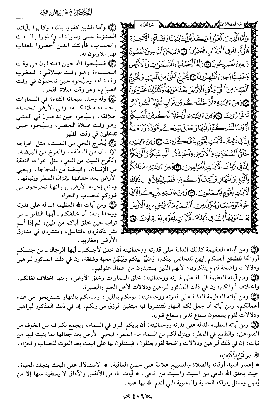 17 - فسبِّحوا الله حين تدخلون في وقت المساء؛ وهو وقت صلاتَي: المغرب والعشاء، وسبِّحوه حين تدخلَون في وقت الصباح، وهو وقت صلاة الفجر.