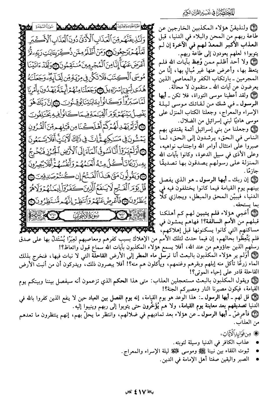 23 - ولقد أعطينا موسى التوراة، فلا تكن - أيها الرسول - في شك من لقائك موسى ليلة الإسراء والمعراج، وجعلنا الكتاب المنزل على موسى هاديًا لبني إسرائيل من الضلال.