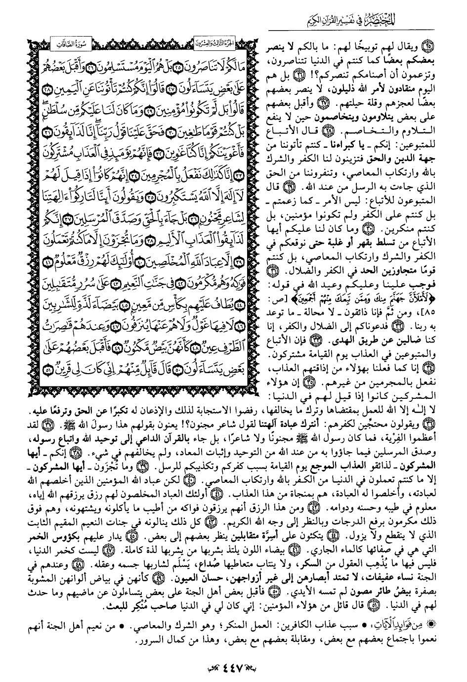 50 - فأقبل بعض أهل الجنة على بعض يتساءلون عن ماضيهم وما حدث لهم في الدنيا.