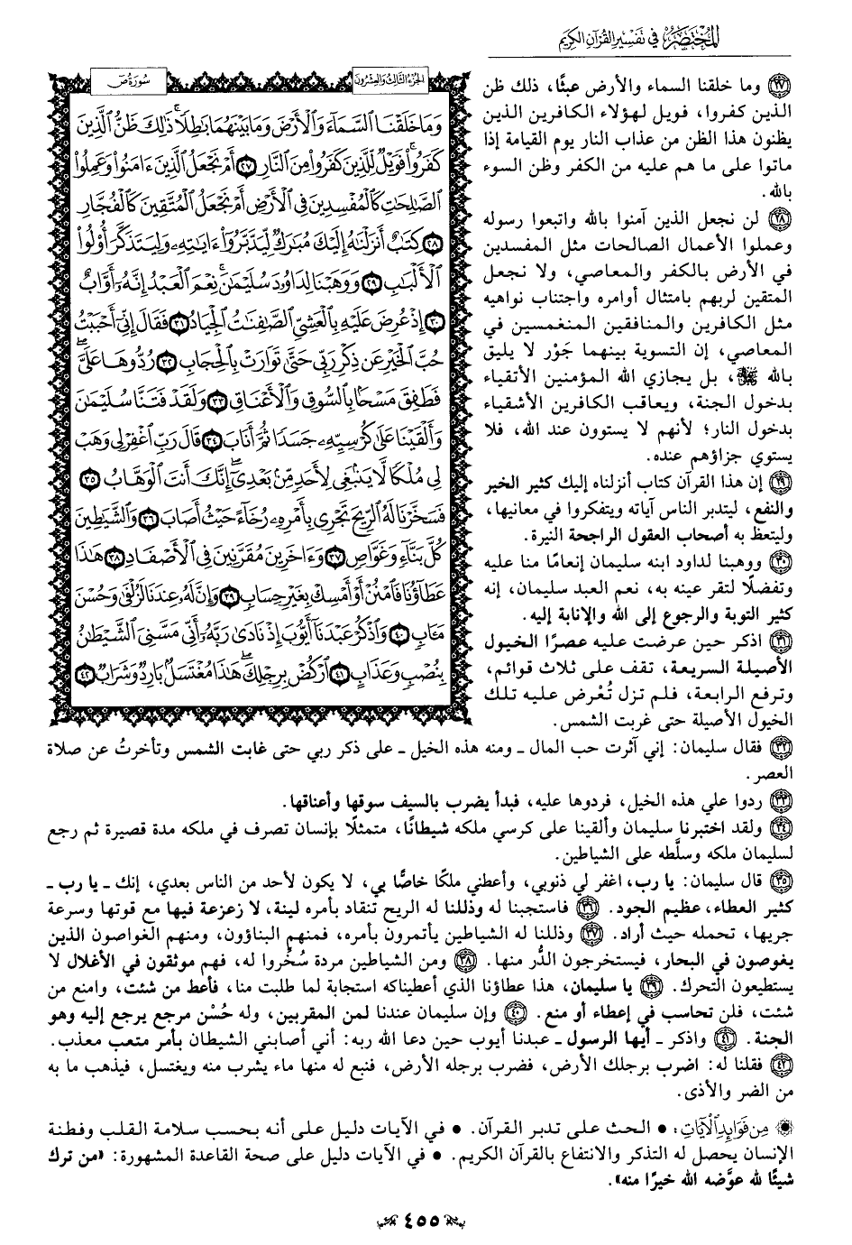 31 - اذكر حين عرضت عليه عصرًا الخيول الأصيلة السريعة، تقف على ثلاث قوائم، وترفع الرابعة، فلم تزل تُعْرض عليه تلك الخيول الأصيلة حتى غربت الشمس.