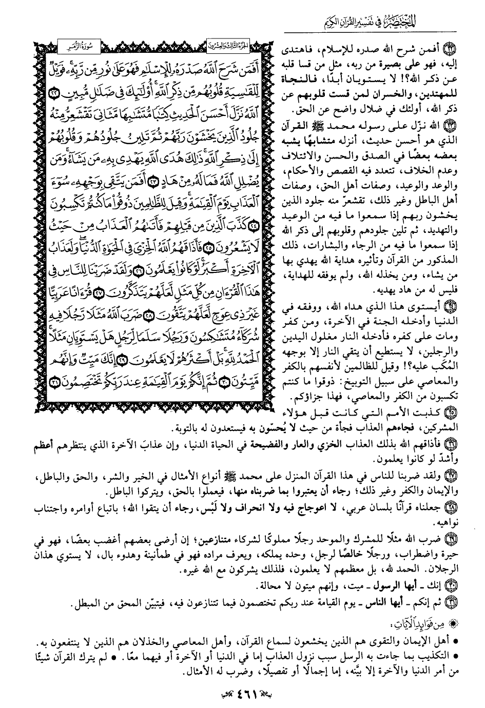 22 - أفمن شرح الله صدره للإسلام، فاهتدى إليه، فهو على بصيرة من ربه، مثل من قسا قلبه عن ذكر الله؟! لا يستويان أبدًا، فالنجاة للمهتدين، والخسران لمن قست قلوبهم عن ذكر الله، أولئك في ضلال واضح عن الحق.