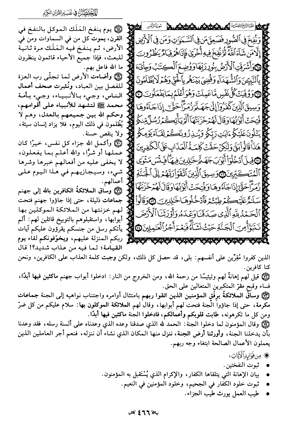 68 - يوم ينفخ المَلَك الموكل بالنفخ في القرن، يموا كل من في السماوات ومن في الأرض، ثم ينفخ فيه المَلَك مرة ثانية للبعث، فإذا جميع الأحياء قائمون ينظرون ما الله فاعل بهم.