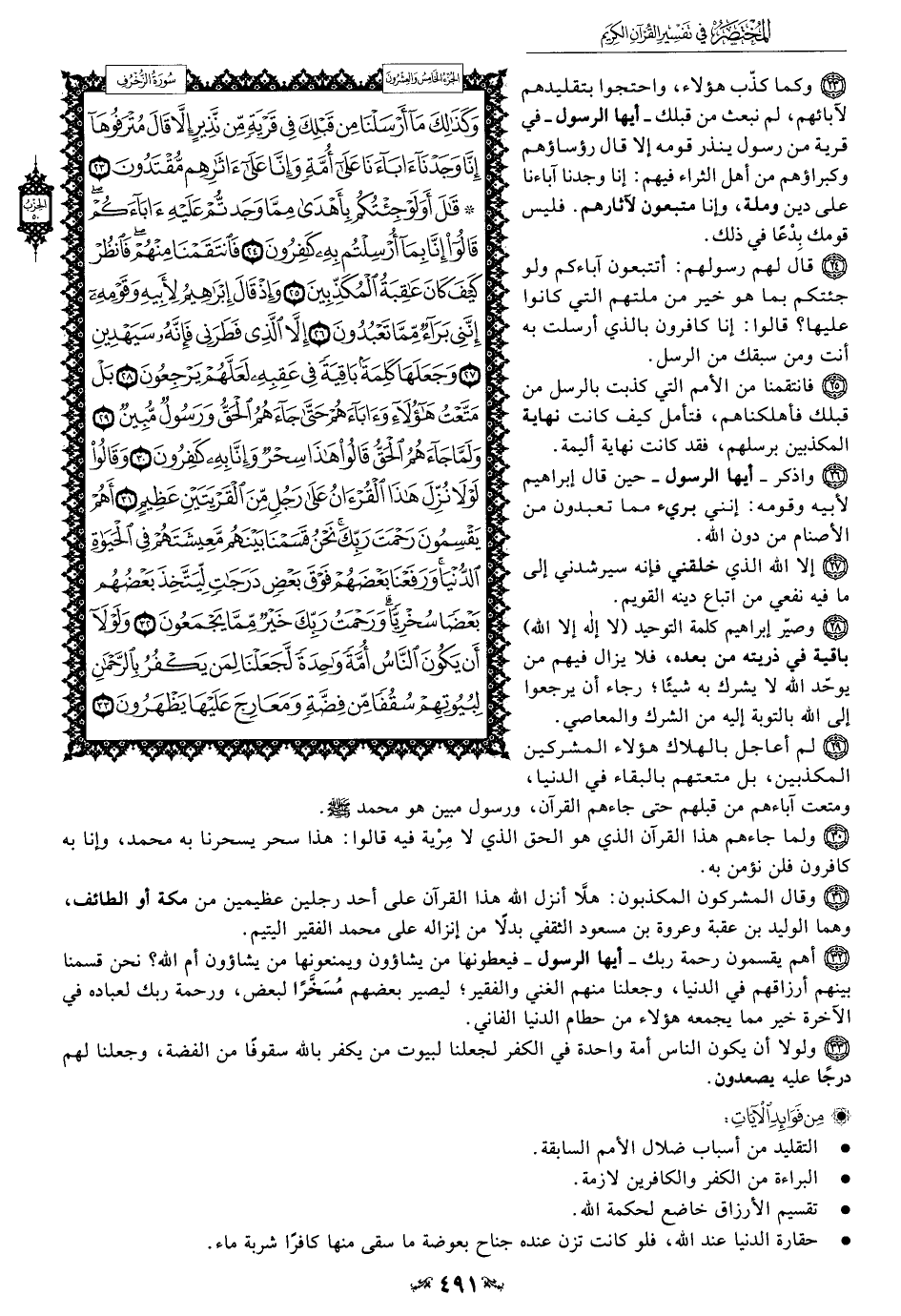 28 - وصيَّر إبراهيم كلمة التوحيد (لا إله إلا الله) باقية في ذريته من بعده، فلا يزال فيهم من يوحِّد الله لا يشرك به شيئًا؛ رجاء أن يرجعوا إلى الله بالتوبة إليه من الشرك والمعاصي.