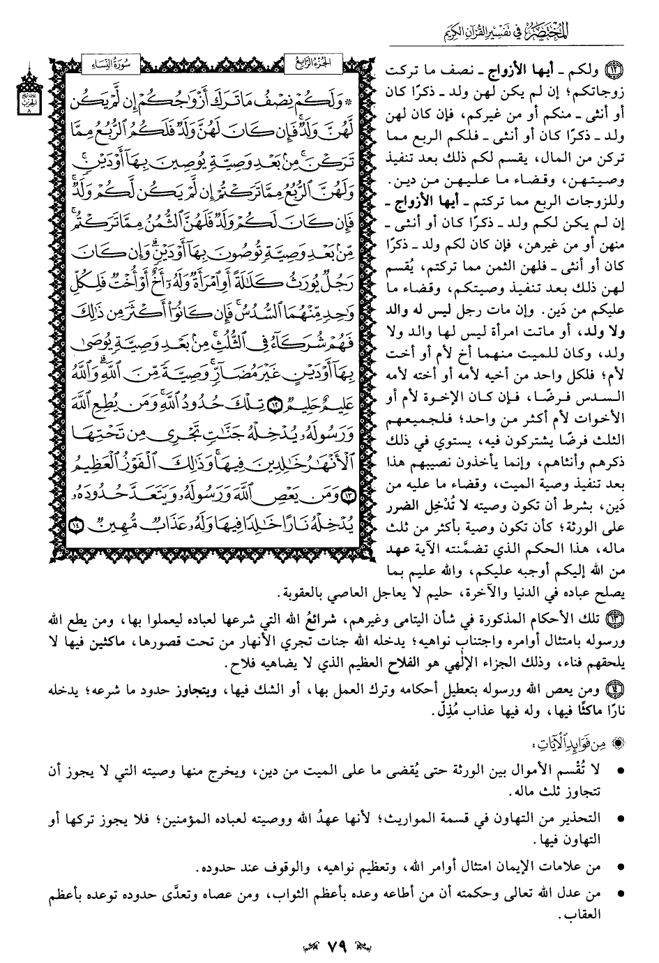 • التحذير من التهاون في قسمة المواريث؛ لأنها عهدُ الله ووصيته لعباده المؤمنين؛ فلا يجوز تركها أو التهاون فيها.