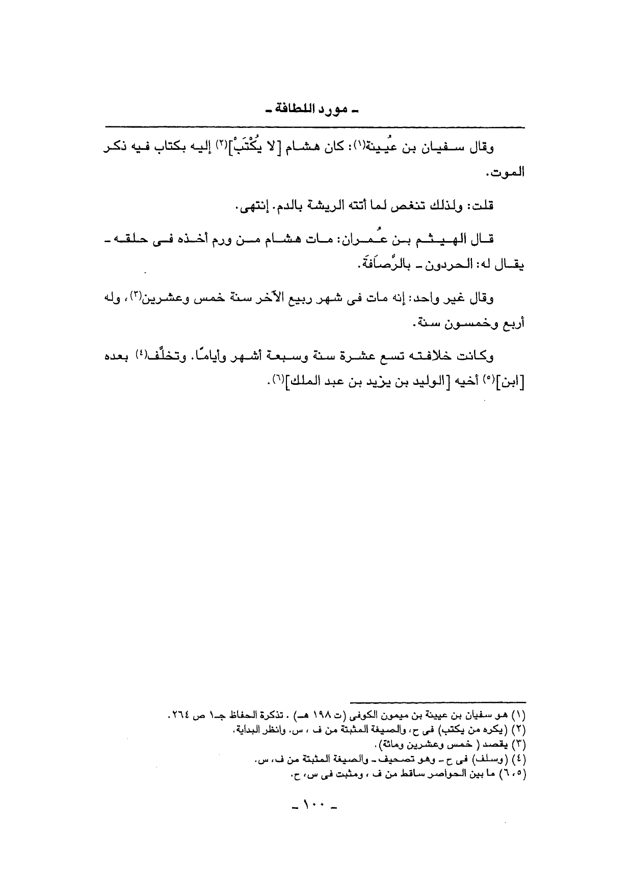وَقَالَ سُفْيَان بن عُيَيْنَة: كَانَ هِشَام [لَا يكْتب] إِلَيْهِ بِكِتَاب فِيهِ ذكر الْمَوْت.