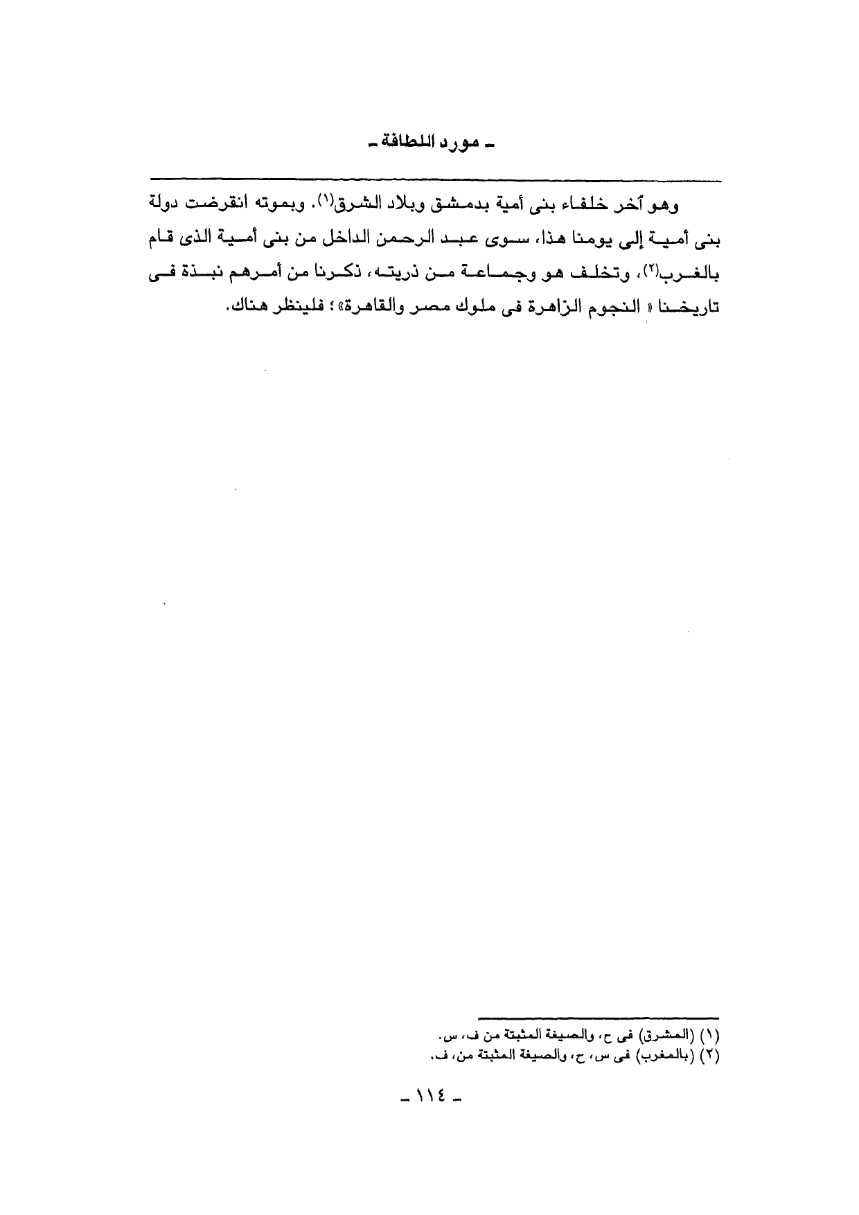 وَهُوَ آخر خلفاء بني أُميَّة بِدِمَشْق وبلاد الشرق. وبموته انقرضت دولة بني أُميَّة إِلَى يَوْمنَا هَذَا، سوى عبد الرَّحْمَن الدَّاخِل من بني أُميَّة الَّذِي قَامَ بالغرب، وتخلف هُوَ وَجَمَاعَة من ذُريَّته، ذكرنَا من أَمرهم نبذة فِي تاريخنا ((النُّجُوم الزاهرة فِي مُلُوك مصر والقاهرة)) ؛ فَلْينْظر هُنَاكَ.