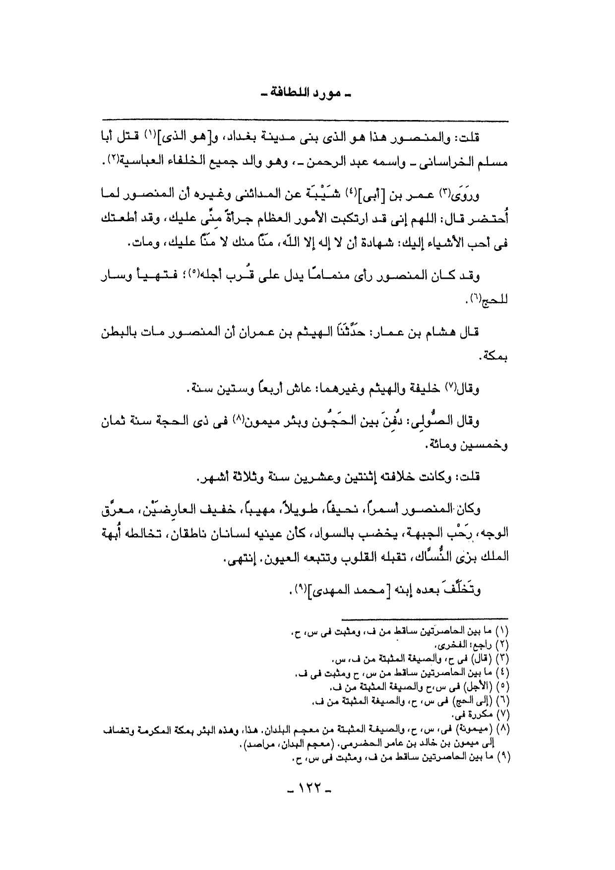 قلت: والمنصور هَذَا هُوَ الَّذِي بنى مَدِينَة بَغْدَاد، و [هُوَ الَّذِي] قتل أَبَا مُسلم الْخُرَاسَانِي - واسْمه عبد الرَّحْمَن -، وَهُوَ وَالِد جَمِيع الْخُلَفَاء العباسية.