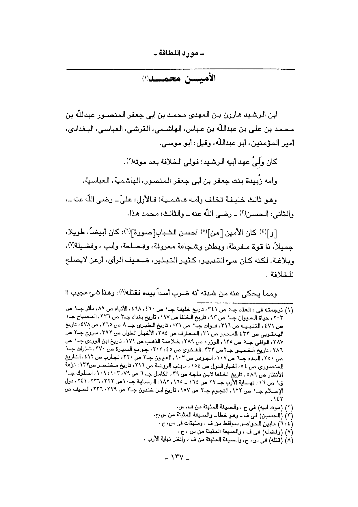 وَهُوَ ثَالِث خَليفَة تخلف وَأمه هاشمية؛ فَالْأول: عَليّ - رَضِي الله عَنهُ -، وَالثَّانِي: الْحسن - رَضِي الله عَنهُ - وَالثَّالِث: مُحَمَّد هَذَا.