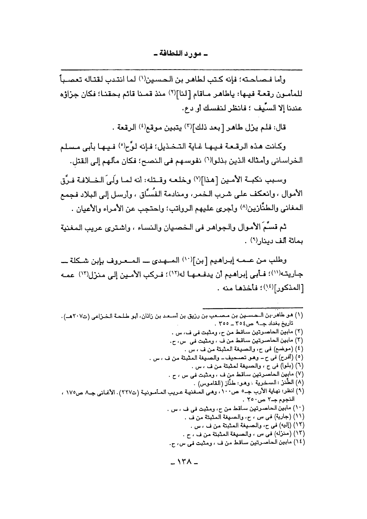 قَالَ: فَلم يزل طَاهِر [بعد ذَلِك] يتَبَيَّن موقع الرقعة.