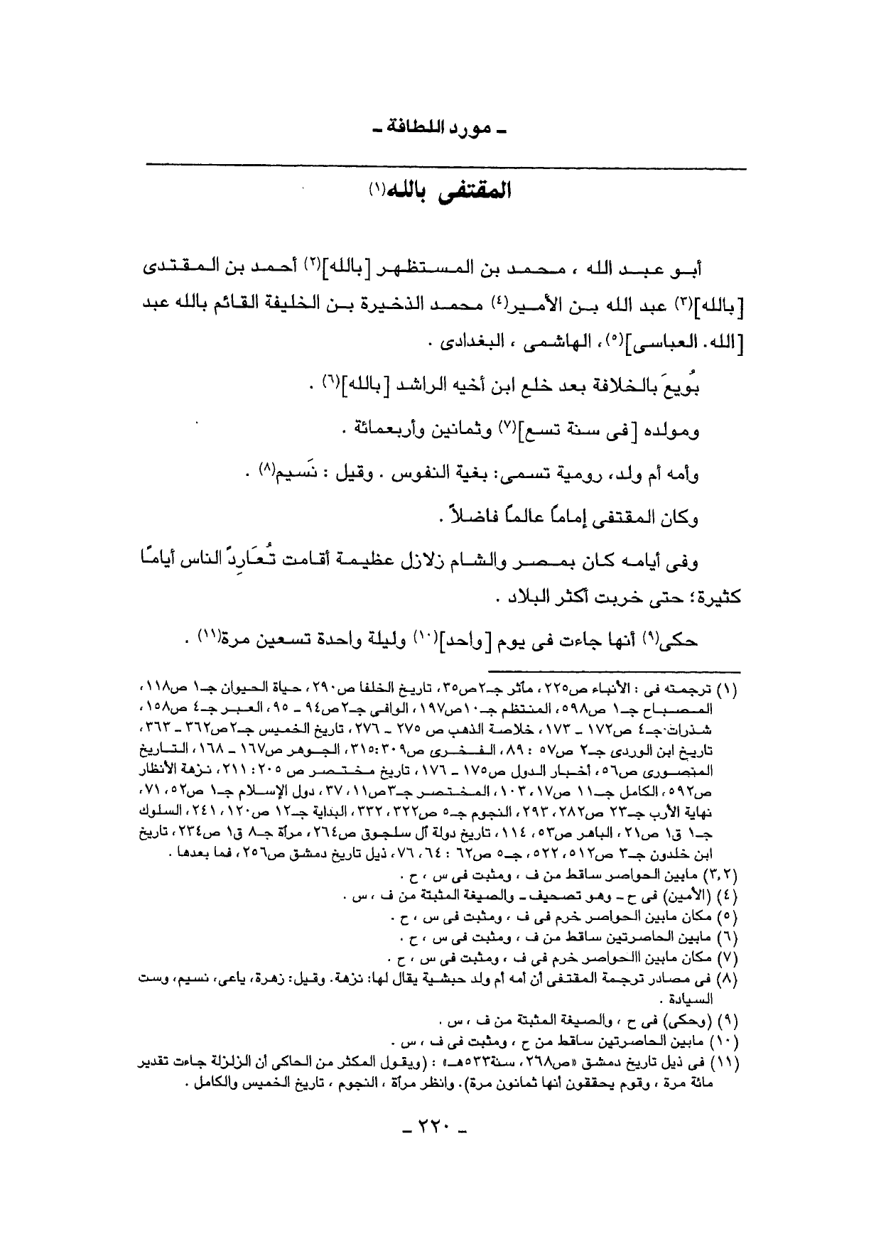 وَكَانَ المقتفي إِمَامًا عَالما فَاضلا.