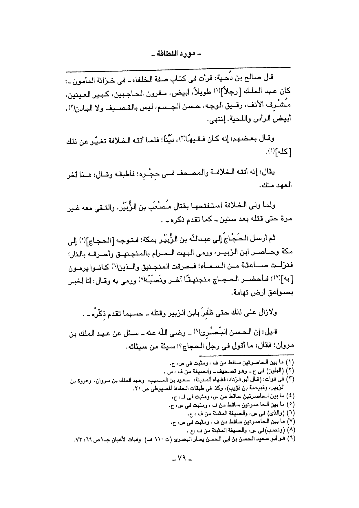 قيل: إِن الْحسن الْبَصْرِيّ - رَضِي الله عَنهُ - سُئِلَ عَن عبد الْملك بن مَرْوَان؛ فَقَالَ: مَا أَقُول فِي رجل الْحجَّاج؟ ! سَيِّئَة من سيئاته.