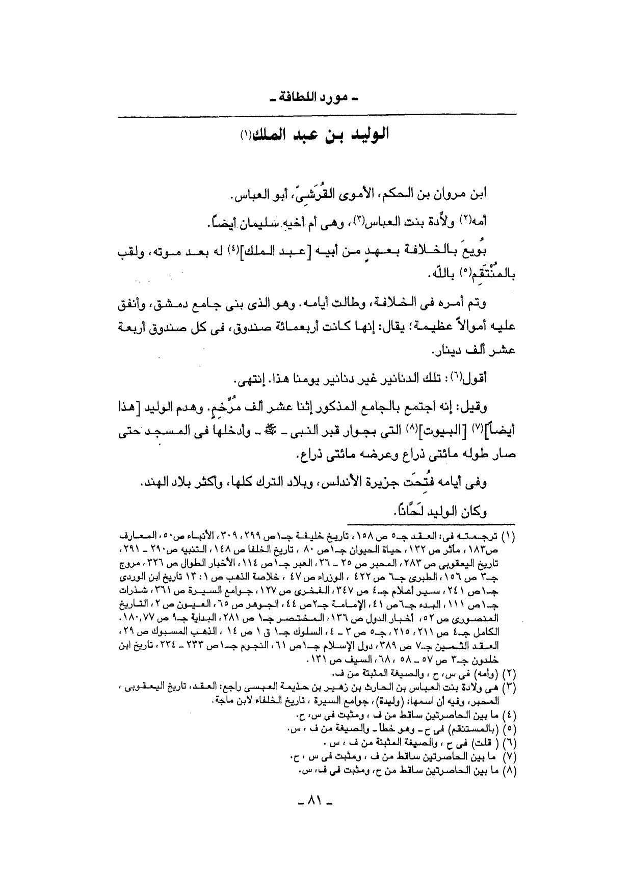 كتاب مورد اللطافة في من ولي السلطنة والخلافة (اسم الجزء: 1)