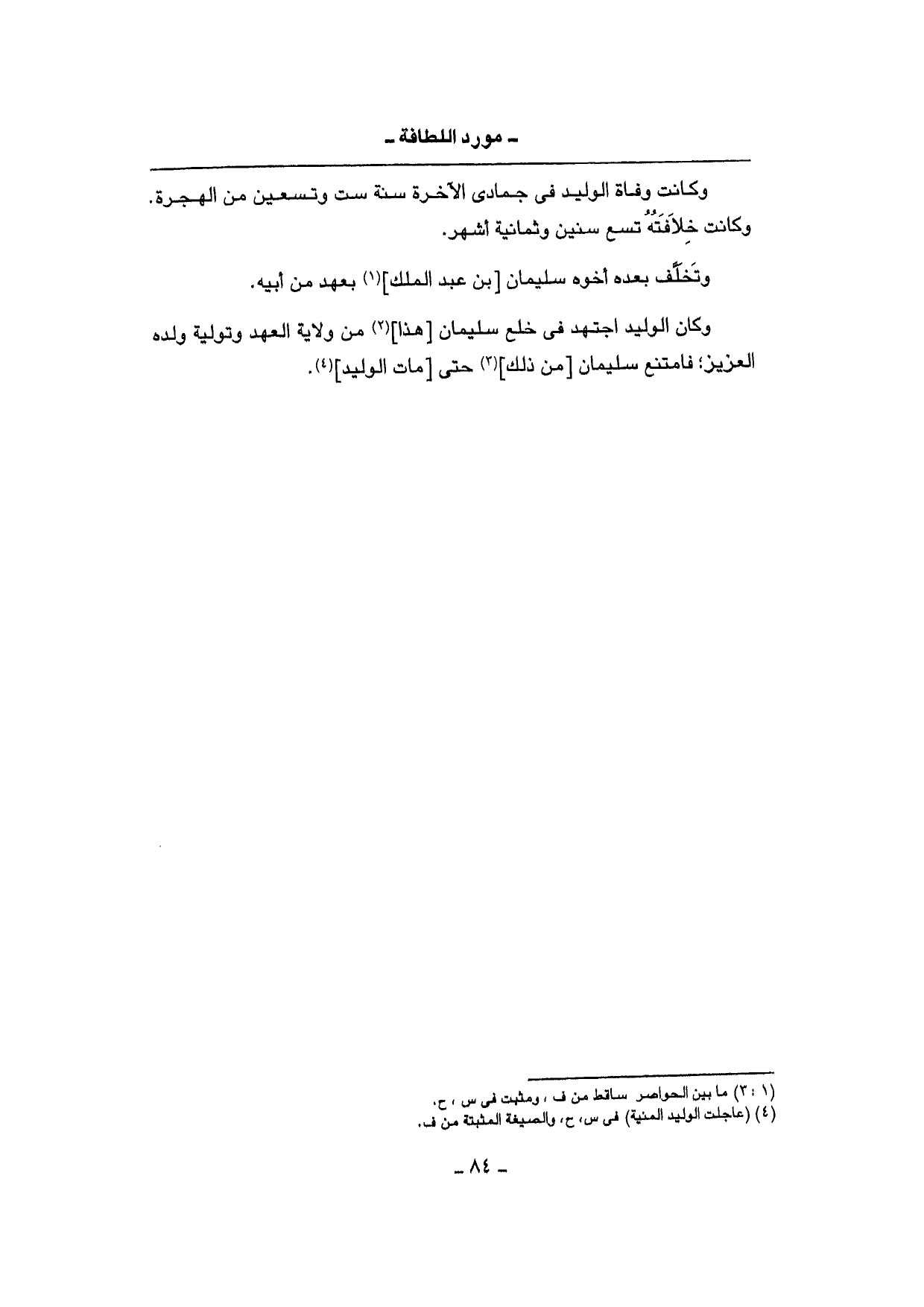 وَكَانَ الْوَلِيد اجْتهد فِي خلع سُلَيْمَان [هَذَا] من ولَايَة الْعَهْد وتولية وَلَده الْعَزِيز؛ فَامْتنعَ سُلَيْمَان [من ذَلِك] حَتَّى [مَاتَ الْوَلِيد] .