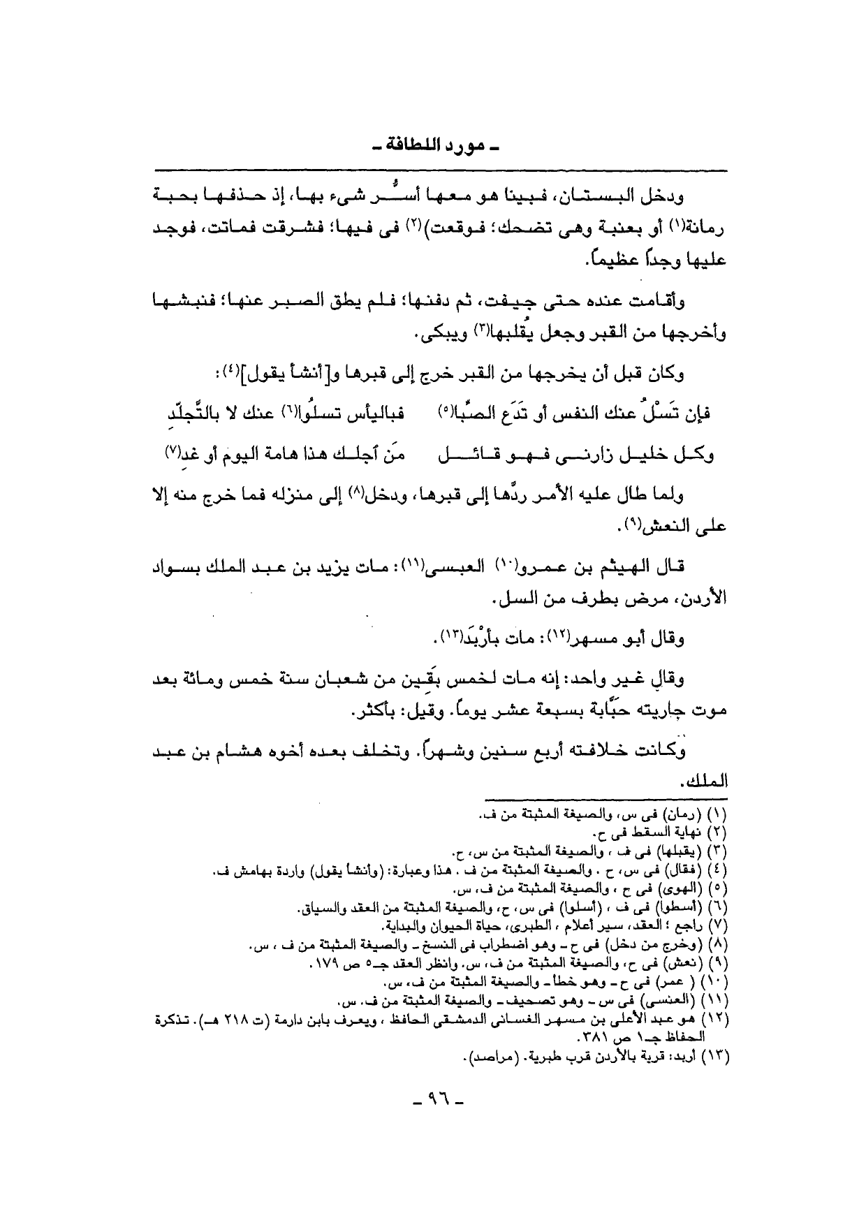 قَالَ الْهَيْثَم بن عَمْرو الْعَبْسِي: مَاتَ يزِيد بن عبد الْملك بسواد الْأُرْدُن، مرض بِطرف من السل.