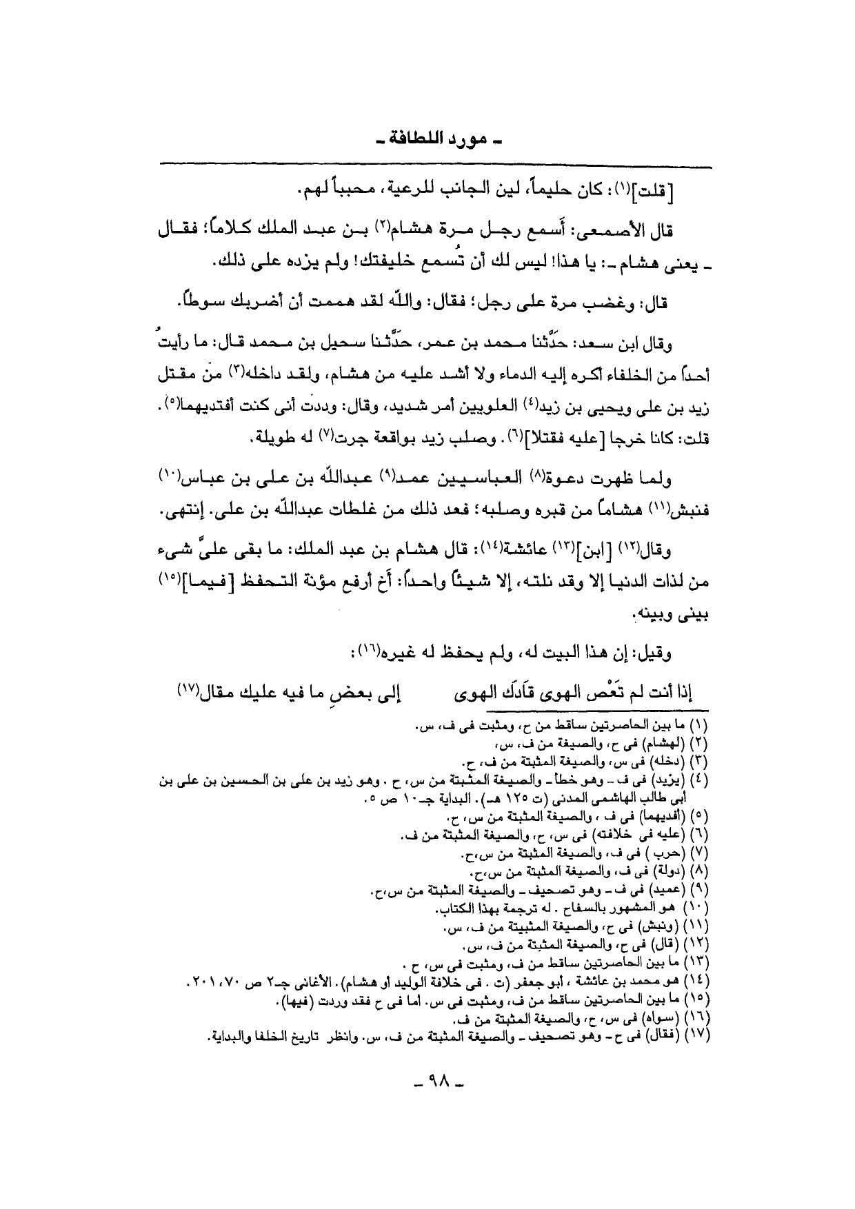 قَالَ الْأَصْمَعِي: أسمع رجل مرّة هِشَام بن عبد الْملك كلَاما؛ فَقَالَ - يَعْنِي هِشَام -: يَا هَذَا {لَيْسَ لَك أَن تسمع خليفتك} وَلم يزده على ذَلِك.