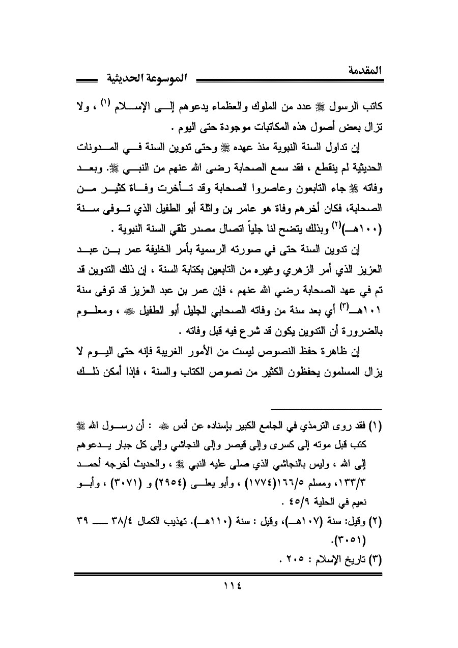 إن تدوين السنة حتى في صورته الرسمية بأمر الخليفة عمر بن عبد العزبز الذي أمر الزهري وغيره من التابعين بكتابة السنة، إن ذلك التدوين قد تم في عهد الصحابة رضي الله عنهم، فإن عمر بن عبد العزيز قد توفى سنة ١٠١ هـ (¬٣) أي بعد سنة من وفاته الصحابي الجليل أبو الطفيل - رضي الله عنه -، ومعلوم بالضرورة أن التدوين يكون قد شرع فيه قبل وفاته.