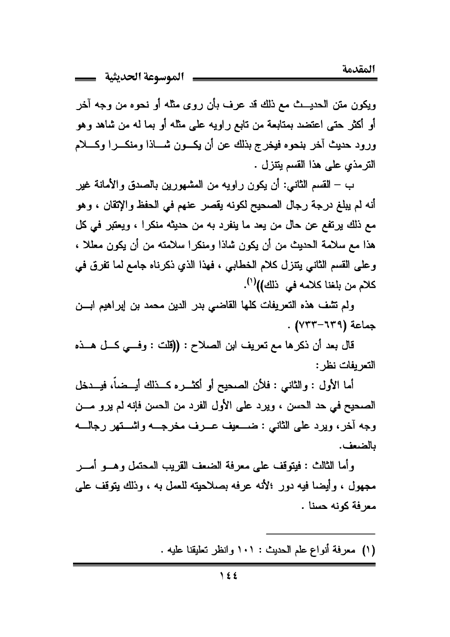 (¬١) معرفة أنواع علم الحديث: ١٠١ وانظر تعليقنا عليه.