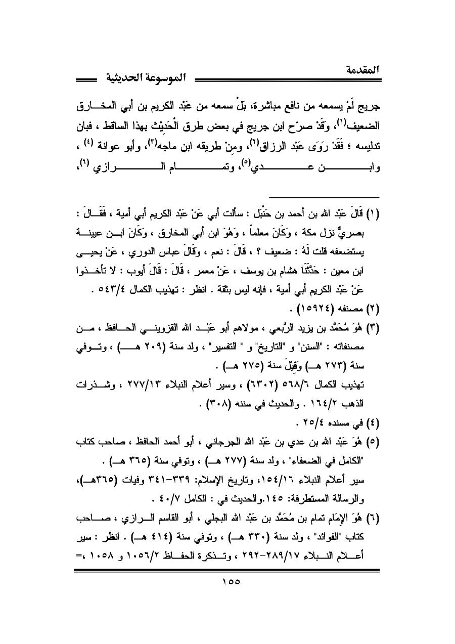 (¬٥) هُوَ عَبْد الله بن عدي بن عَبْد الله الجرجاني، أبو أحمد الحافظ، صاحب كتاب "الكامل في الضعفاء"، ولد سنة (٢٧٧ هـ)، وتوفي سنة (٣٦٥ هـ).