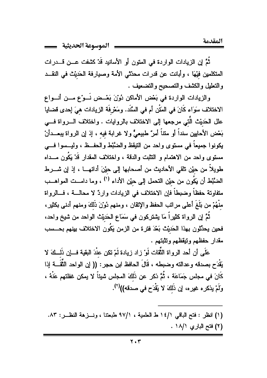 (¬١) انظر: فتح الباقي ١/ ١٤ ط العلمية، ١/ ٩٧ طبعتنا، ونزهة النظر: ٨٣.