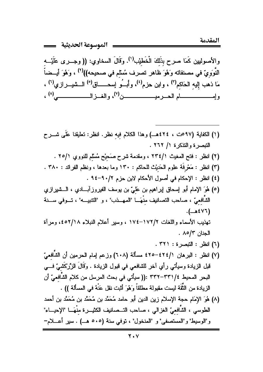 (¬١) الكفاية (٥٩٧ ت، ٤٢٤ هـ) وهذا الكلام فِيهِ نظر. انظر: تعليقنا علَى شرح التبصرة والتذكرة ١/ ٢٦٢.