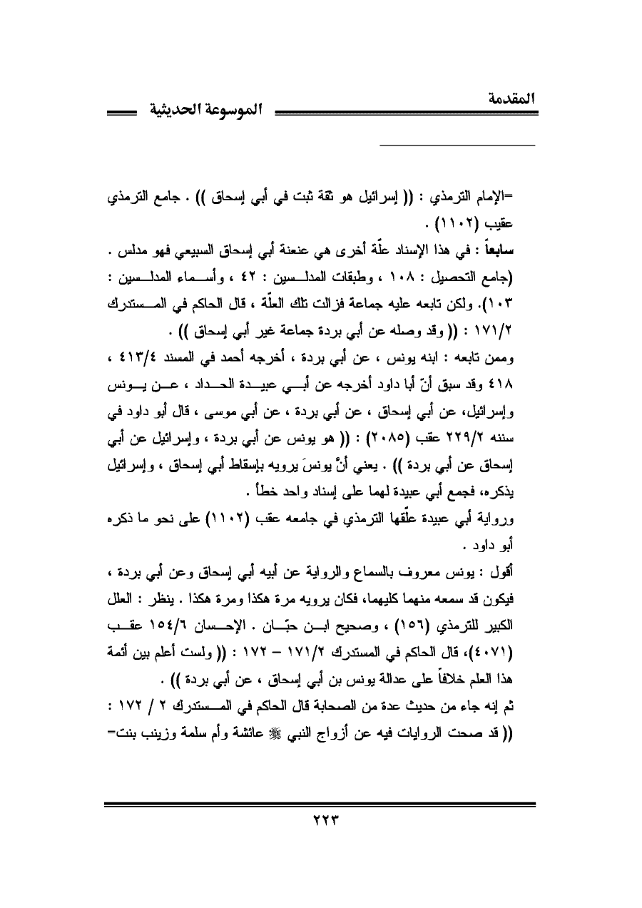 (جامع التحصيل: ١٠٨، وطبقات المدلسين: ٤٢، وأسماء المدلسين: ١٠٣). ولكن تابعه عليه جماعة فزالت تلك العلّة، قد الحاكم في المستدرك ٢/ ١٧١:"وقد وصله عن أبي بردة جماعة غير أبي إسحاق".