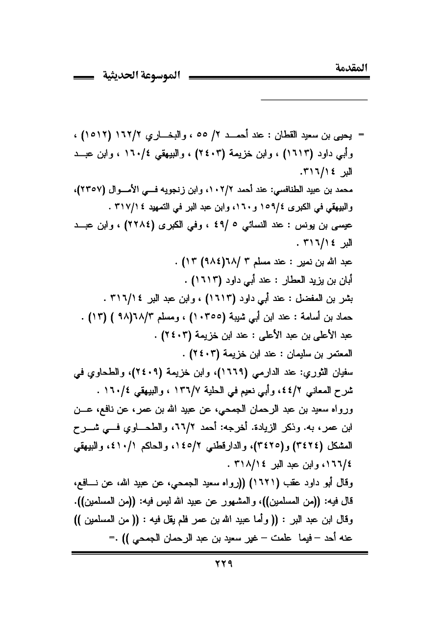 = يحيى بن سعيد القطان: عند أحمد ٢/ ٥٥، والبخاري ٢/ ١٦٢ (١٥١٢)، وأبي داود (١٦١٣)، وابن خزيمة (٢٤٠٣)، والبيهقي ٤/ ١٦٠، وابن عبد البر ١٤/ ٣١٦.