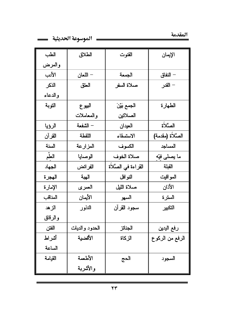 الإيمان القنوت الطلاق الطب والمرض- النفاق الجمعة - اللعان الأدب- القدر صلاة السفر العتق الذكر والدعاءالطهارة الجمع بين الصلاتين البيوع والمعاملات التوبةالصلاة العيدان - الشفعة الرؤياالصلاة (مقدمة) الاستسقاء اللقطة القرآنالمساجد الكسوف المزارعة السنةما يصلى فيه صلاة الخوف الوصايا العلمالقبلة القراءة في الصلاة الفرائض الجهادالمواقيت النوافل الهبة الهجرةالأذان صلاة الليل العمري الإمارةالسترة السهو الأيمان المناقبالتكبير سجود القرآن النذور الزهد والرقاقرفع اليدين الجنائز الحدود والديات الفتنالرفع من الركوع الزكاة الأقضية أشراط الساعةالسجود الحج الأطعمة والأشربة القيامة