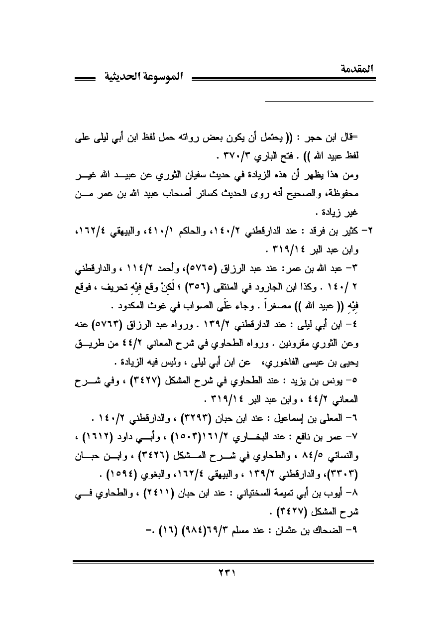 = قال ابن حجر: "يحتمل أن يكون بعض رواته حمل لفظ ابن أبي ليلى على لفظ عبيد الله". فتح الباري ٣/ ٣٧٠.