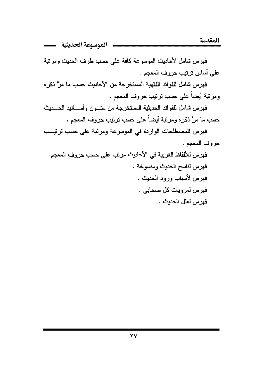 فهرس شامل لأحاديث الموسوعة كافة على حسب طرف الحديث ومرتبة على أساس ترتيب حروف المعجم.