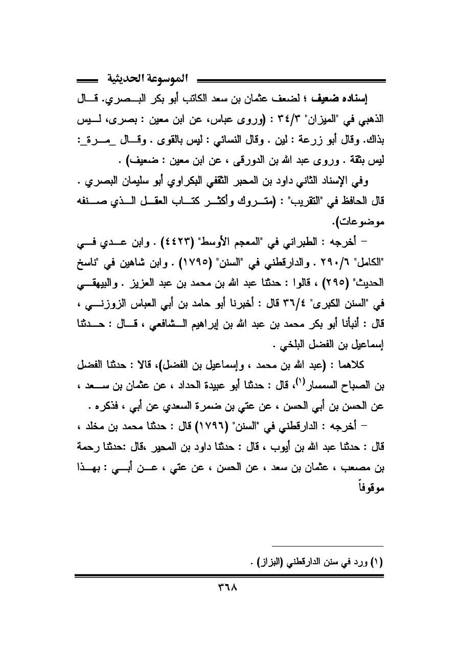 (¬١) ورد في سنن الدارقطني (البزاز).