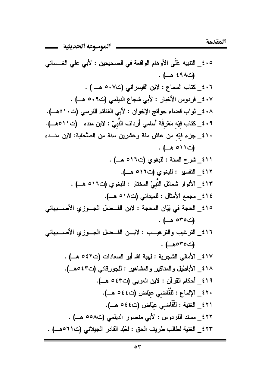 ٤٠٧ - فردوس الأخبار: لأبي شجاع الديلمي (ت ٥٠٩ هـ).