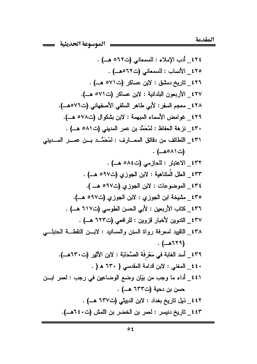 ٤٣٨ - التقييد لمعرفة رواة السنن والمسانيد: لابن النقطة الحنبلي (٦٢٩ هـ).