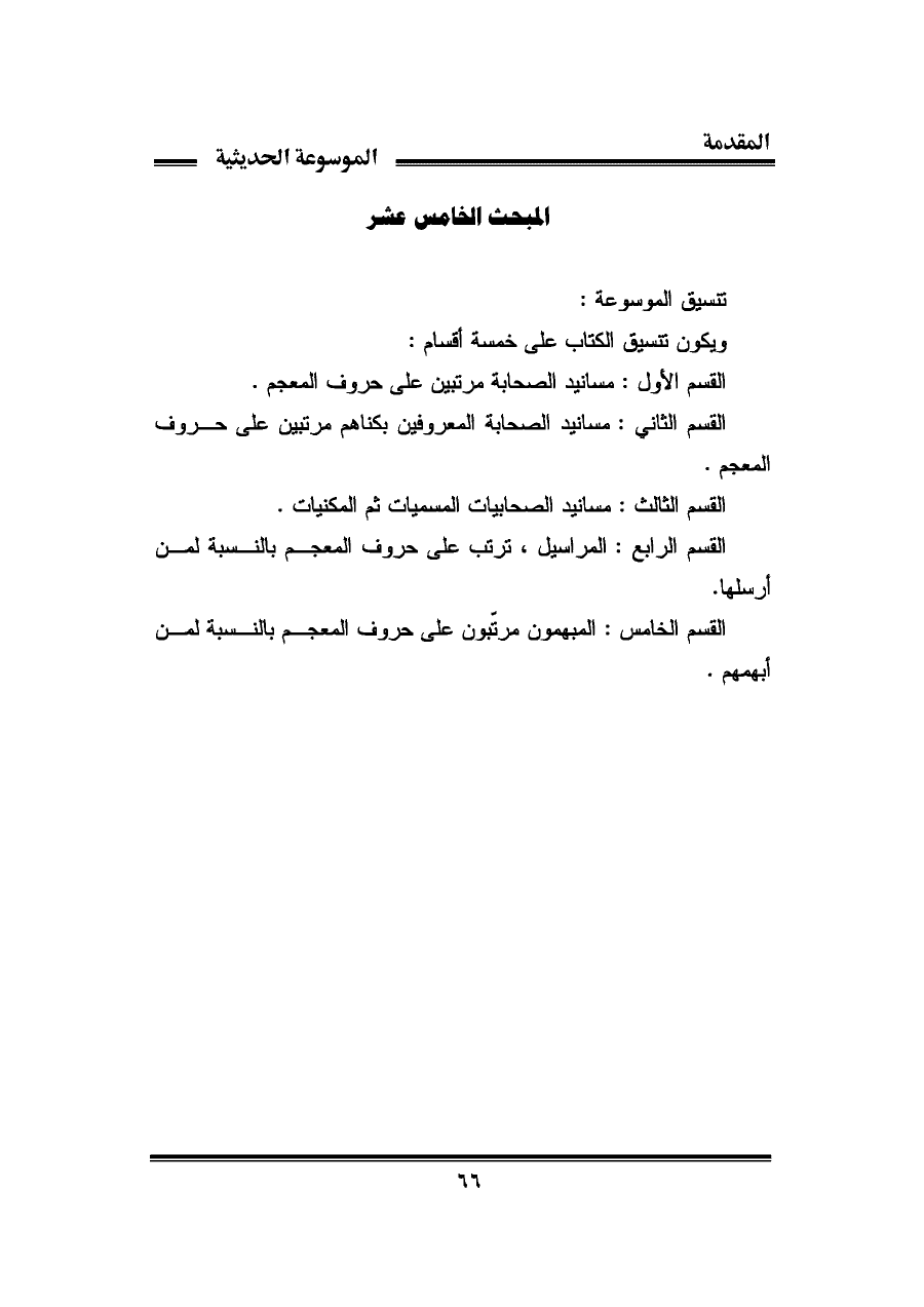 القسم الأول: مسانيد الصحابة مرتبين على حروف المعجم.