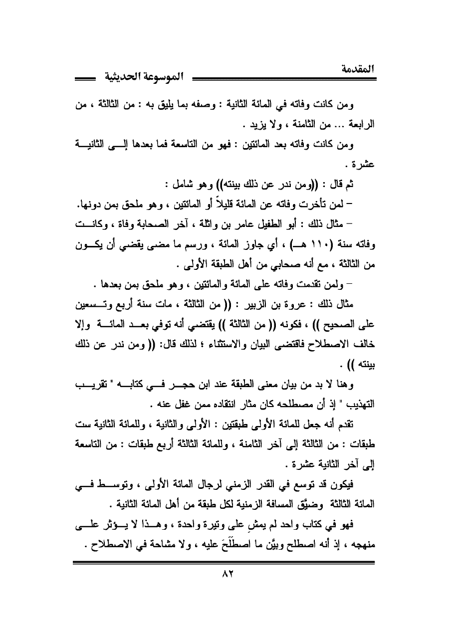 فيكون قد توسع في القدر الزمنى لرجال المائة الأولى، وتوسط في المائة الثالثة وضيَّق المسافة الزمنية لكل طبقة من أهل المائة الثانية.