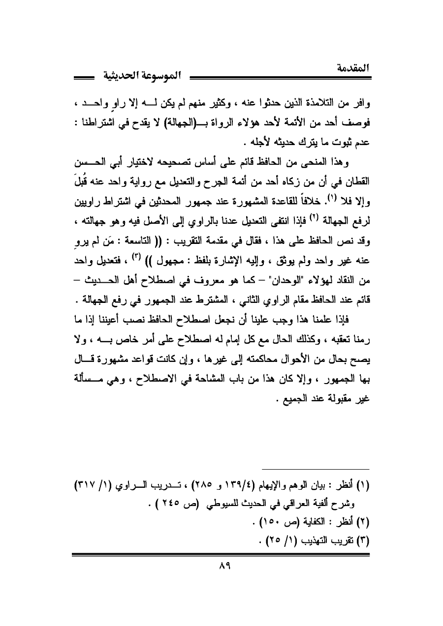 (¬١) أنظر: بيان الوهم والإيهام (٤/ ١٣٩ و ٢٨٥)، تدريب الراوي (١/ ٣١٧) وشرح ألفية العراقي في الحديث للسيوطي (ص ٢٤٥).