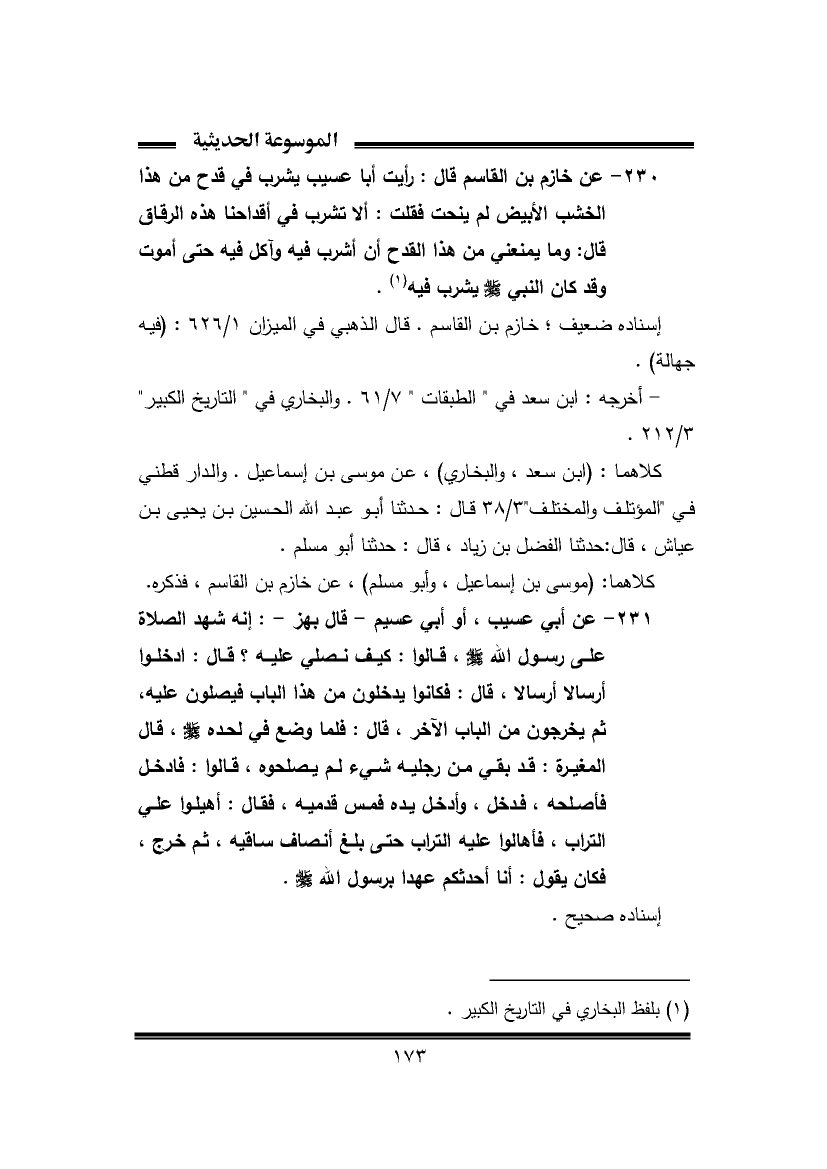 (¬١) بلفظ البخارى في التاريخ الكبير.