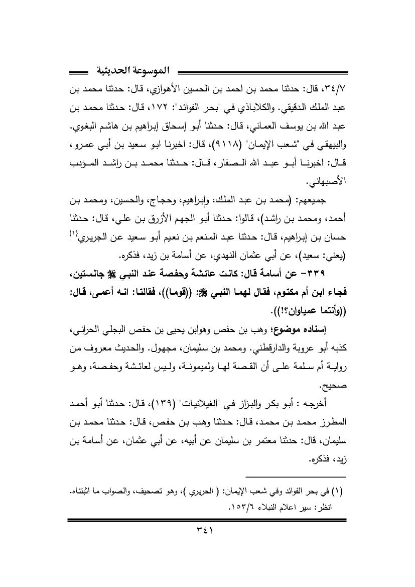 (¬١) في بحر الفوائد وفي شعب الإيمان: (الحريري)، وهو تصحيف، والصواب ما أثبتناه. انظر: سير أعلام النبلاء ٦/ ١٥٣.