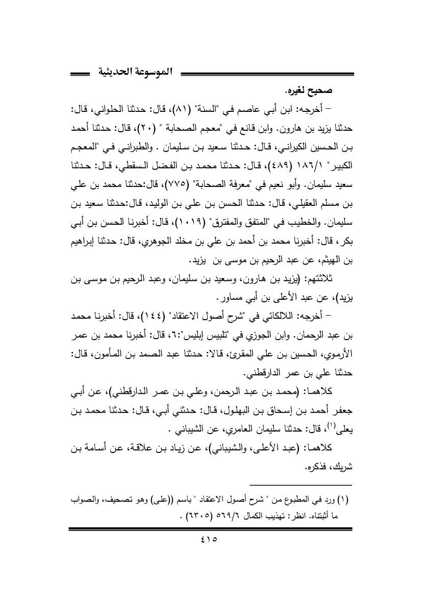 (¬١) ورد في المطبوع من "شرح أصول الاعتقاد" باسم (على) وهو تصحيف، والصواب ما أثبتناه. انظر: تهذيب الكمال ٦/ ٥٦٩ (٦٣٠٥).