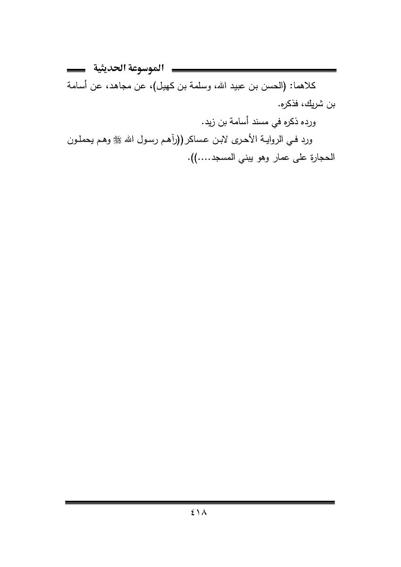 كلاهما: (الحسن بن عبيد الله، وسلمة بن كهيل)، عن مجاهد، عن أسامة بن شريك، فذكره.