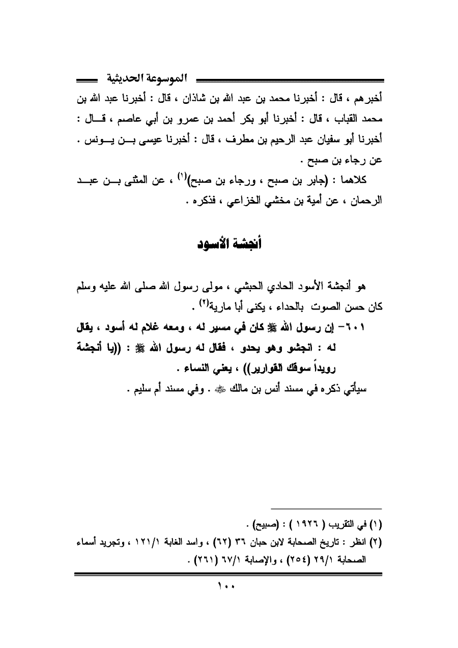 هو أنجشة الأسود الحادي الحبشي، مولى رسول الله صلى الله عليه وسلم كان حسن الصوت بالحداء، يكنى أبا مارية (¬٢).