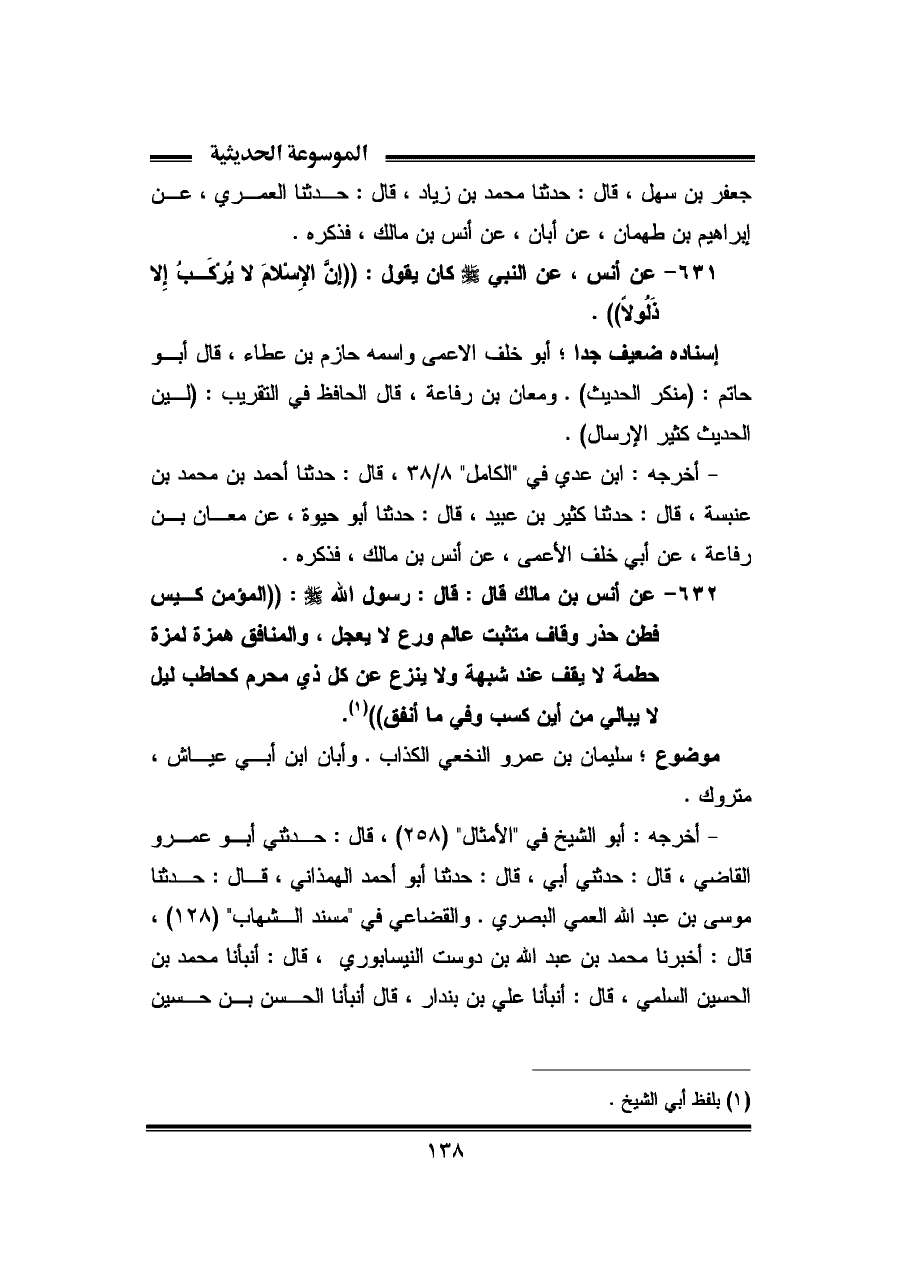 (¬١) بلفظ أبي الشيخ.
