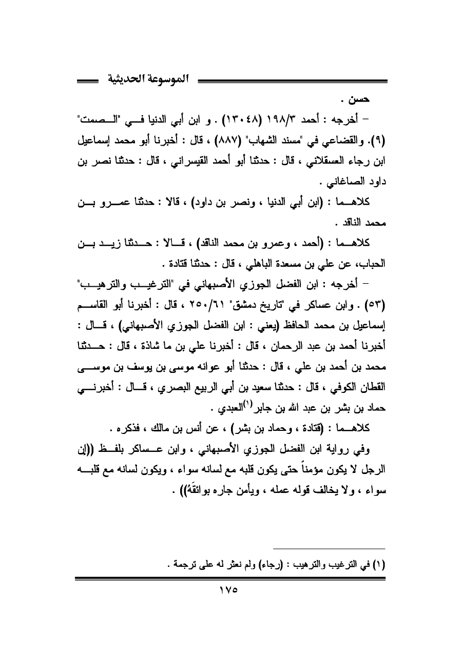 (¬١) في الترغيب والترهيب: (رجاء) ولم نعثر له على ترجمة.