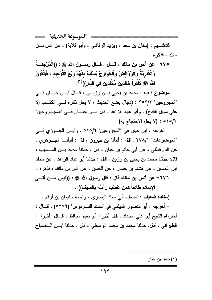 كتاب الموسوعة الحديثية - ديوان الوقف السني (اسم الجزء: 5)