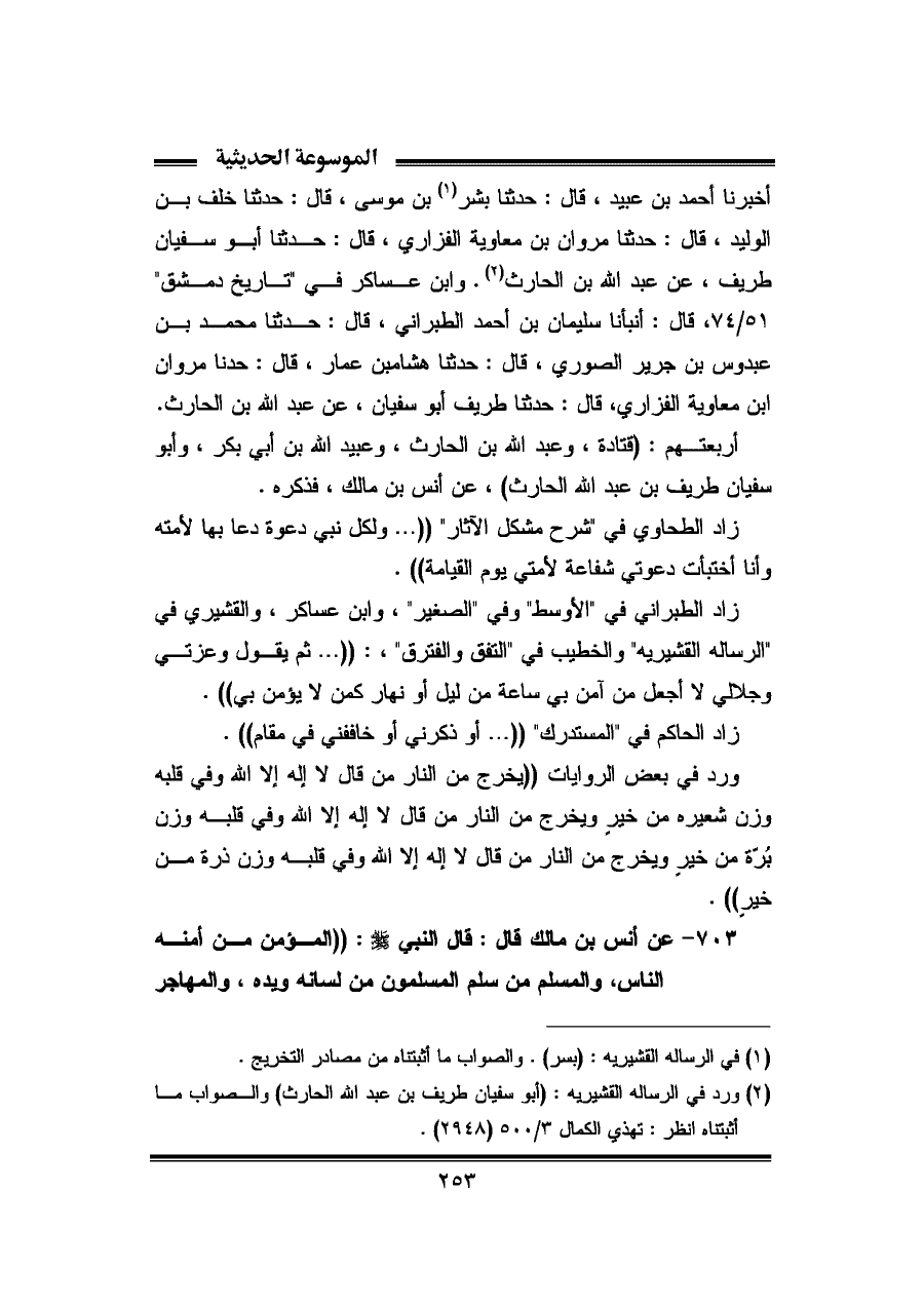 (¬٢) ورد في الرساله القشيريه: (أبو سفيان طريف بن عبد الله الحارث) والصواب ما أثبتناه انظر: تهذى الكمال ٣/ ٥٠٠ (٢٩٤٨).