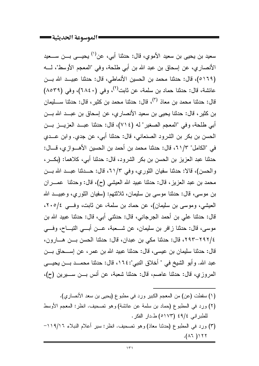 (¬٣) ورد في المطبوع (حدثنا معاذ) وهو تصحيف. انظر: سير أعلام النبلاء ١٦/ ١١٩ - ١٢٢ (٨٦).