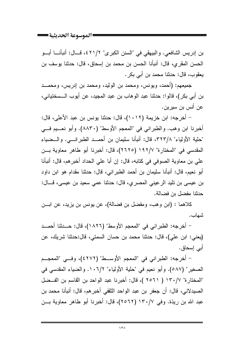 جميعهم: (أحمد، ويونس، ومحمد بن الوليد، ومحمد بن إدريس، ومحمد بن أبي بكر)، قالوا: حدثنا عبد الوهاب بن عبد المجيد، عن أيوب السختياني، عن أنس بن سيرين.