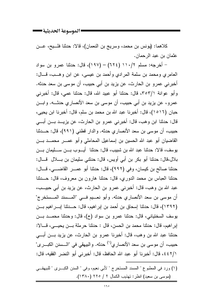 (¬١) ورد في المطبوع "المسند المستخرج" لأبي نعيم، وفي "السنن الكبرى" (موسى بن سعيد) انظر: تهذيب الكمال ٢/ ٢٢٥ (١٣٨٠).