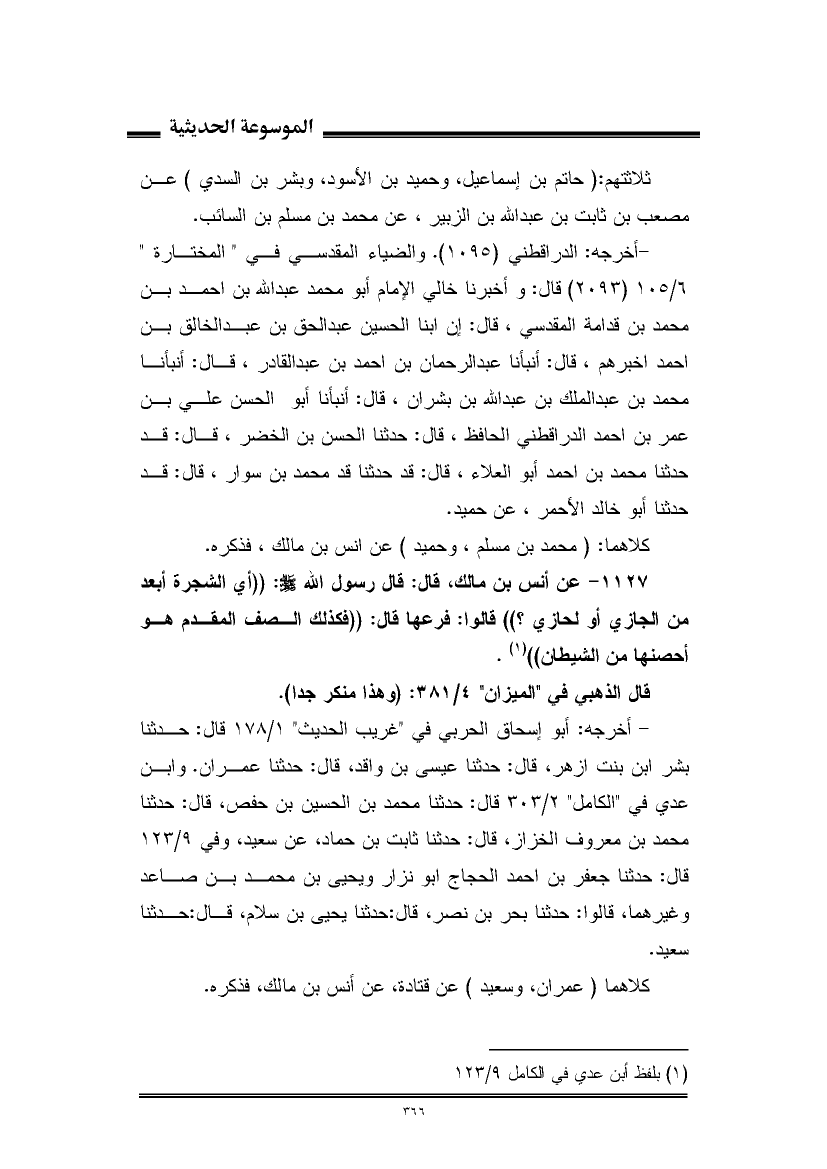(¬١) بلفظ ابن عدى في الكامل ٩/ ١٢٣.
