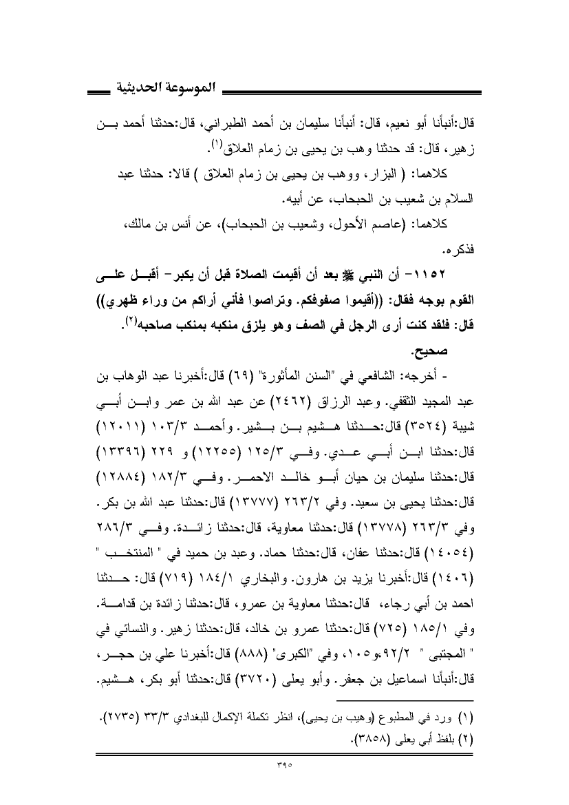 قال: أنبأنا أبو نعيم، قال: أنبأنا سليمان بن أحمد الطبراني، قال: حدثنا أحمد بن زهير، قال: قد حدثنا وهب بن يحيى بن زمام العلاق (¬١).