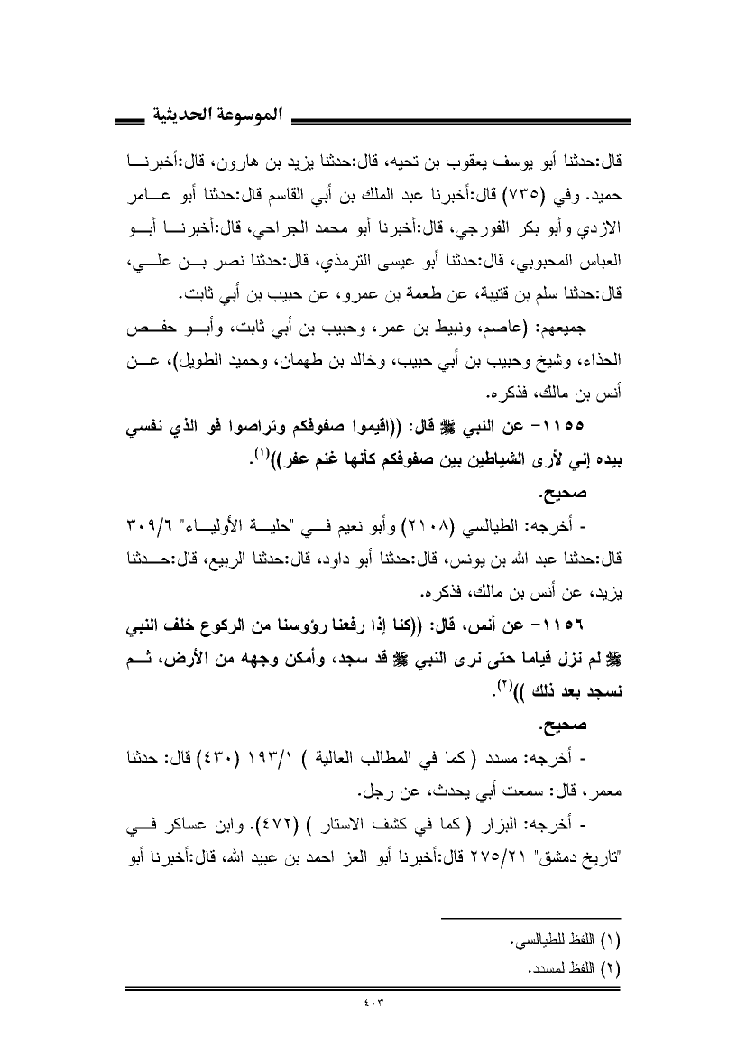 ١١٥٥ - عن النبي - صلى الله عليه وسلم - قال: "اقيموا صفوفكم وتراصوا فوالذي نفسي بيده إني لأرى الشياطين بين صفوفكم كأنها غنم عفر" (¬١).
